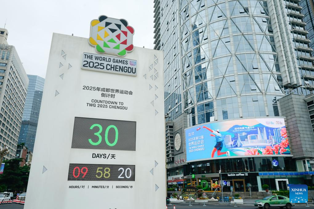 CHENGDU, 8 julio, 2025 (Xinhua) -- Imagen del 8 de julio de 2025 de un reloj de cuenta regresiva que marca los 30 días que faltan para los Juegos Mundiales 2025, en Chengdu, en la provincia de Sichuan, en el suroeste de China. Los Juegos alcanzaron el martes la cuenta regresiva de 30 días y se llevarán a cabo del 7 al 17 de agosto. (Xinhua/Xu Bingjie)
