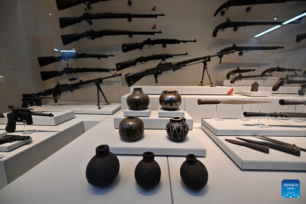 YANGQUAN, 8 julio, 2025 (Xinhua) -- Imagen del 7 de julio de 2025 de algunas exhibiciones en el salón conmemorativo de la Ofensiva de los Cien Regimientos, en Yangquan, en la provincia de Shanxi, en el norte de China. La Ofensiva de los Cien Regimientos tuvo lugar en el norte de China desde agosto de 1940 hasta enero de 1941 durante la Guerra de Resistencia del Pueblo Chino contra la Agresión Japonesa. (Xinhua/Zhan Yan)
