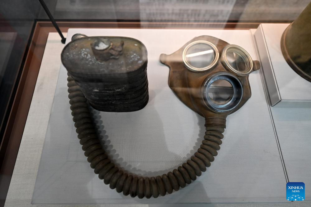 YANGQUAN, 8 julio, 2025 (Xinhua) -- Imagen del 7 de julio de 2025 de una máscara antigás utilizada por los invasores japoneses en el salón conmemorativo de la Ofensiva de los Cien Regimientos, en Yangquan, en la provincia de Shanxi, en el norte de China. La Ofensiva de los Cien Regimientos tuvo lugar en el norte de China desde agosto de 1940 hasta enero de 1941 durante la Guerra de Resistencia del Pueblo Chino contra la Agresión Japonesa. (Xinhua/Zhan Yan)