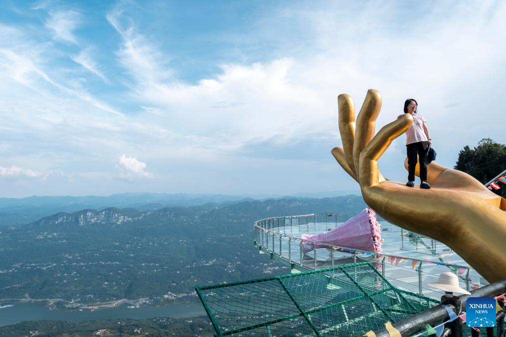 ENSHI, 8 julio, 2025 (Xinhua) -- Imagen del 7 de julio de 2025 de una turista visitando un área escénica, en el distrito de Jianshi, en la prefectura autónoma tujia y miao de Enshi, en la provincia de Hubei, en el centro de China. Enshi es un conocido destino turístico de verano en el centro de China. (Xinhua/Wu Zhizun)