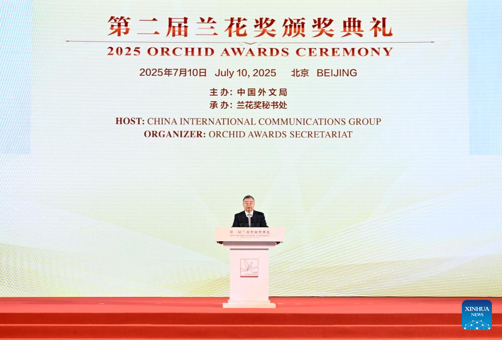 BEIJING, 10 jul (Xinhua) -- La ceremonia de entrega de la II edición de los Premios Orquídea se celebró hoy jueves en Beijing, honrando a amigos extranjeros y organizaciones internacionales que han promovido los valores compartidos de la humanidad, facilitado el intercambio cultural entre China y el resto del mundo, y fortalecido el apoyo popular para construir conjuntamente una comunidad de futuro compartido de la humanidad.