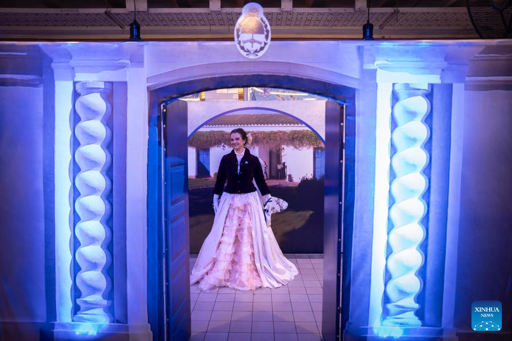 BUENOS AIRES, 9 julio, 2025 (Xinhua) -- Una actriz portando vestimenta de época posa en una réplica de la Casa Histórica de Tucumán en la estación Perú del metro de Buenos Aires durante un paseo histórico en los antiguos coches La Brugeoise, en el marco de las celebraciones por el Día de la Independencia, en la ciudad de Buenos Aires, capital de Argentina, el 9 de julio de 2025. (Xinhua/Martín Zabala)