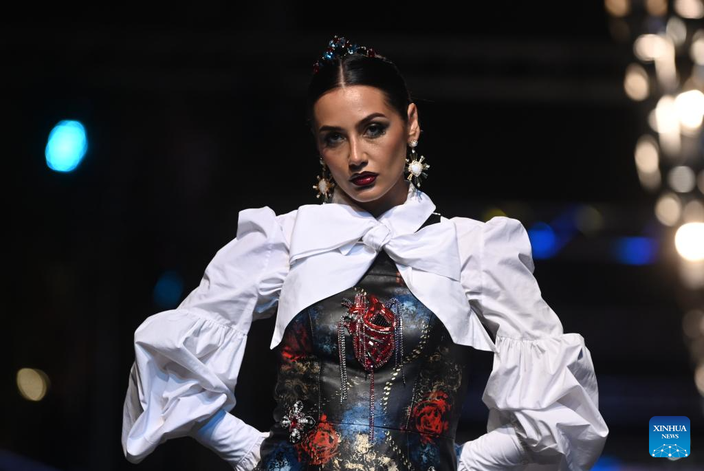LA VALETA, 10 julio, 2025 (Xinhua) -- Imagen del 9 de julio de 2025 de una modelo presentando una creación en la Semana de la Moda de Malta 2025, en La Valeta, Malta. El evento se lleva a cabo aquí del 7 al 12 de julio. (Xinhua/Jonathan Borg)