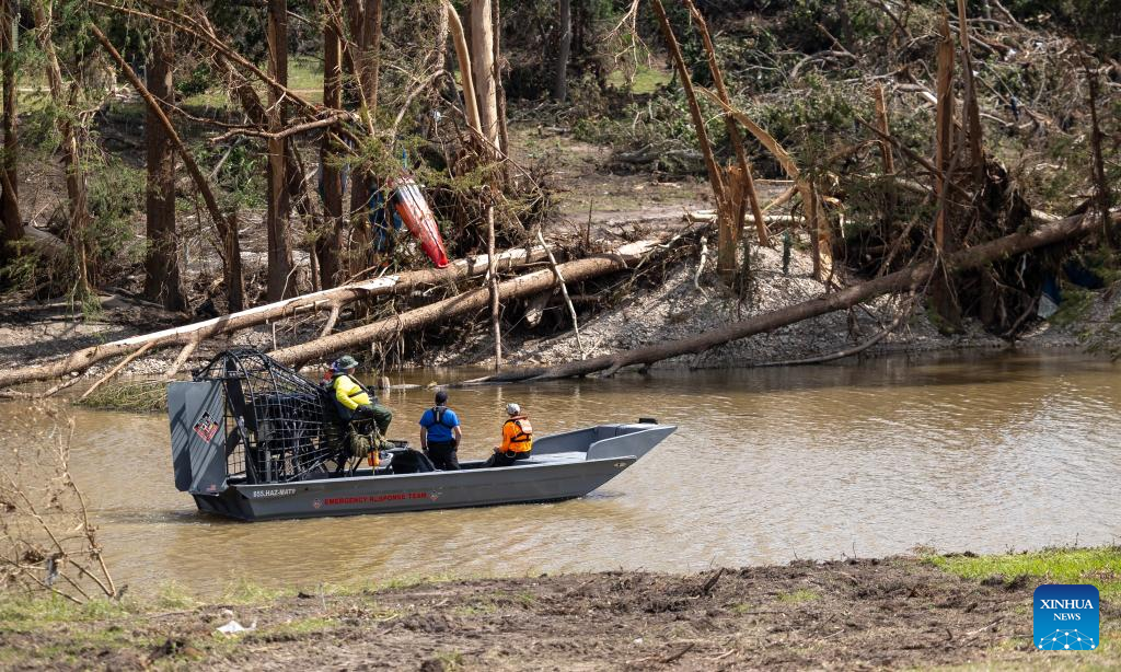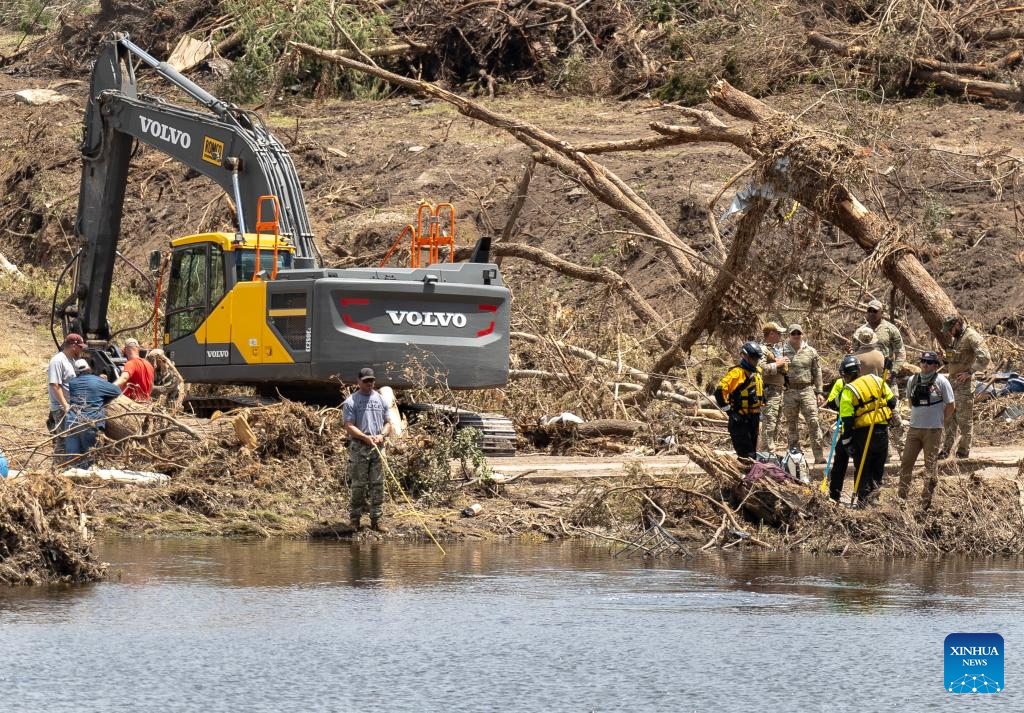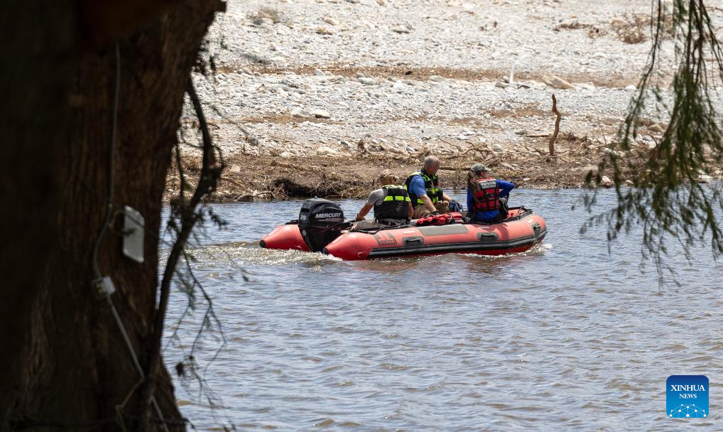 HOUSTON, 12 julio, 2025 (Xinhua) -- Imagen del 11 de julio de 2025 de rescatistas buscando víctimas, en Hunt, Texas, Estados Unidos. Las devastadoras inundaciones del 4 de julio en el centro de Texas han cobrado al menos 121 muertos y más de 150 desaparecidos. (Xinhua/Nick Wagner)
