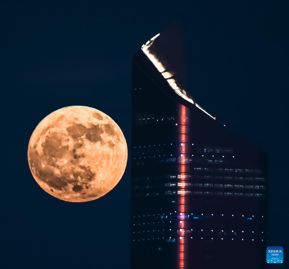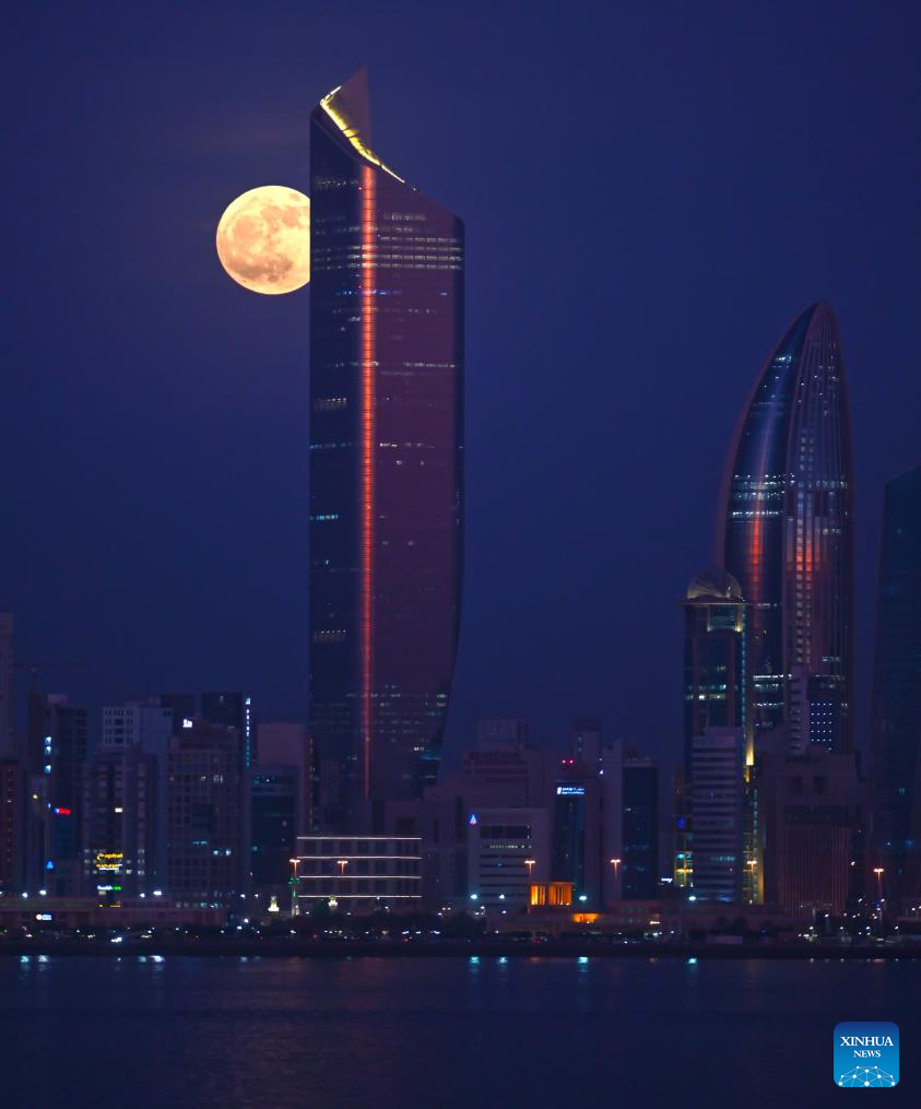 CIUDAD DE KUWAIT, 11 julio, 2025 (Xinhua) -- Imagen del 10 de julio de 2025 de la luna llena vista en el cielo sobre la Ciudad de Kuwait, en Kuwait. (Xinhua/Asad)