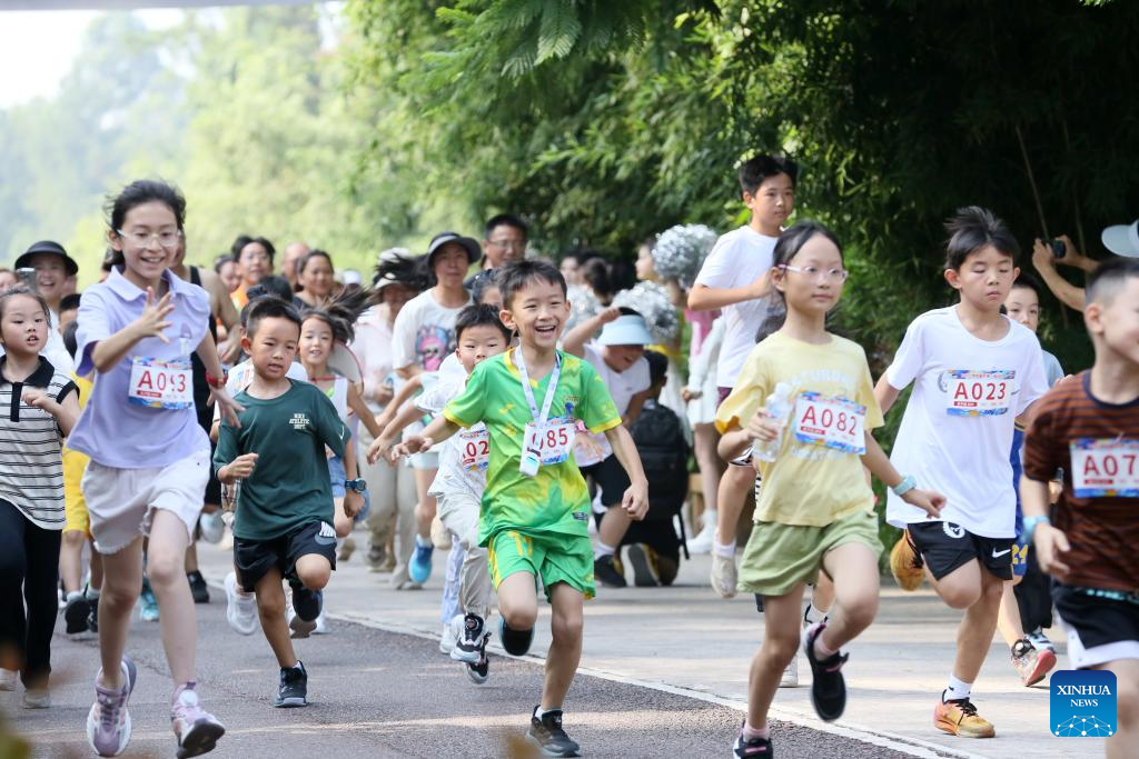 BEIJING, 12 julio, 2025 (Xinhua) -- Niños corren durante una actividad en un parque, en la ciudad de Leshan, en la provincia de Sichuan, en el suroeste de China, el 12 de julio de 2025. Los niños de todo el país están enriqueciendo sus vacaciones de verano a través de actividades coloridas. (Xinhua/Li Huashi)