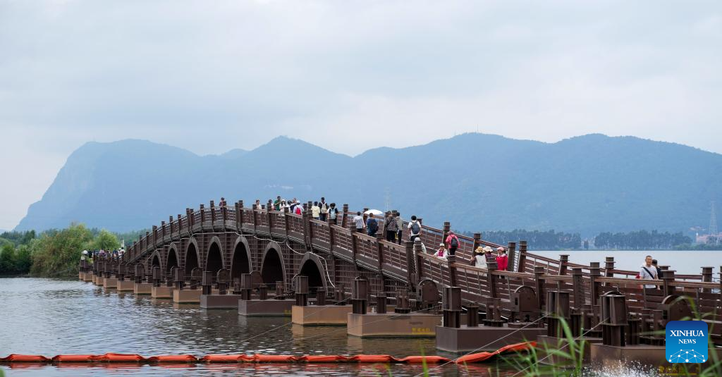 KUNMING, 12 julio, 2025 (Xinhua) -- Turistas visitan un área escénica, en Kunming, en la provincia de Yunnan, en el suroeste de China, el 12 de julio de 2025. Los destinos turísticos en Yunnan entraron a su temporada alta de turismo con el comienzo de las vacaciones de verano. (Xinhua/Hao Yaxin)