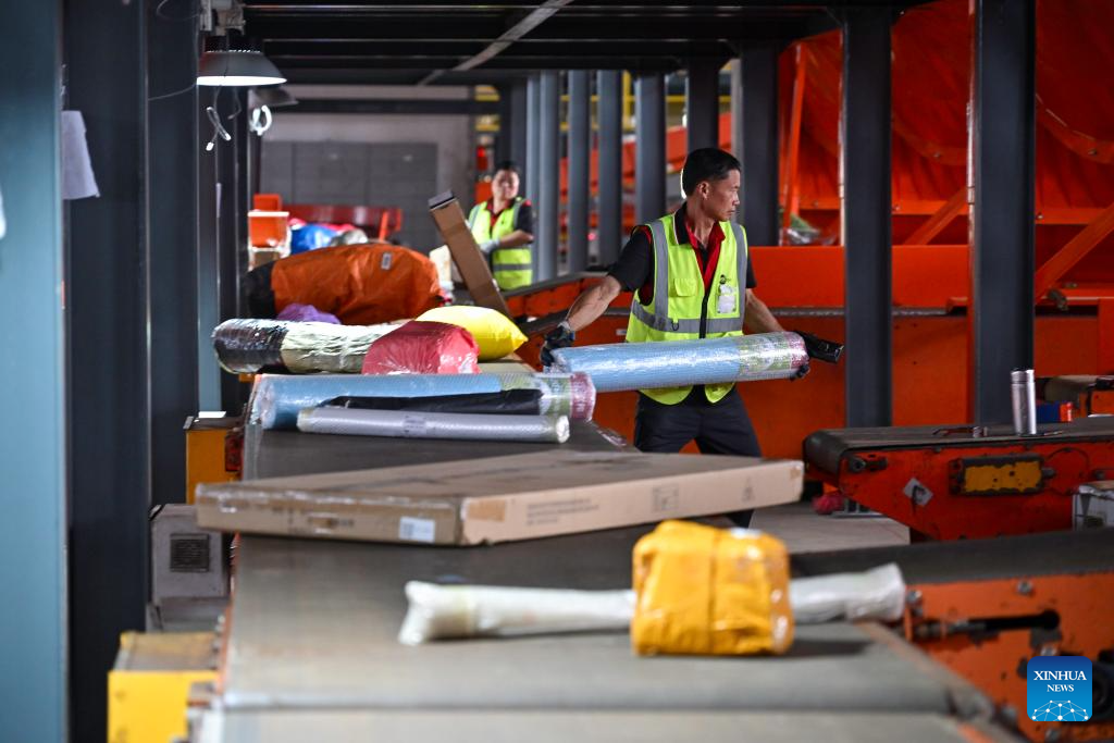 SHANGRAO, 13 julio, 2025 (Xinhua) -- Imagen del 11 de julio de 2025 de un centro de transferencia logística, en el distrito de Hengfeng, en la ciudad de Shangrao, en la provincia de Jiangxi, en el este de China. Ubicado en el noreste de Jiangxi, el distrito de Hengfeng es un centro que conecta cuatro provincias. Gracias a su ubicación geográfica privilegiada, ha atraído la concentración de empresas de mensajería exprés e impulsado la economía local a través del sector logístico. (Xinhua/Liu Jinhai)