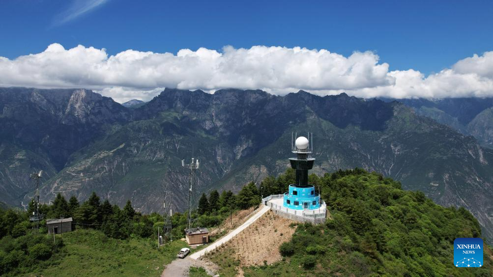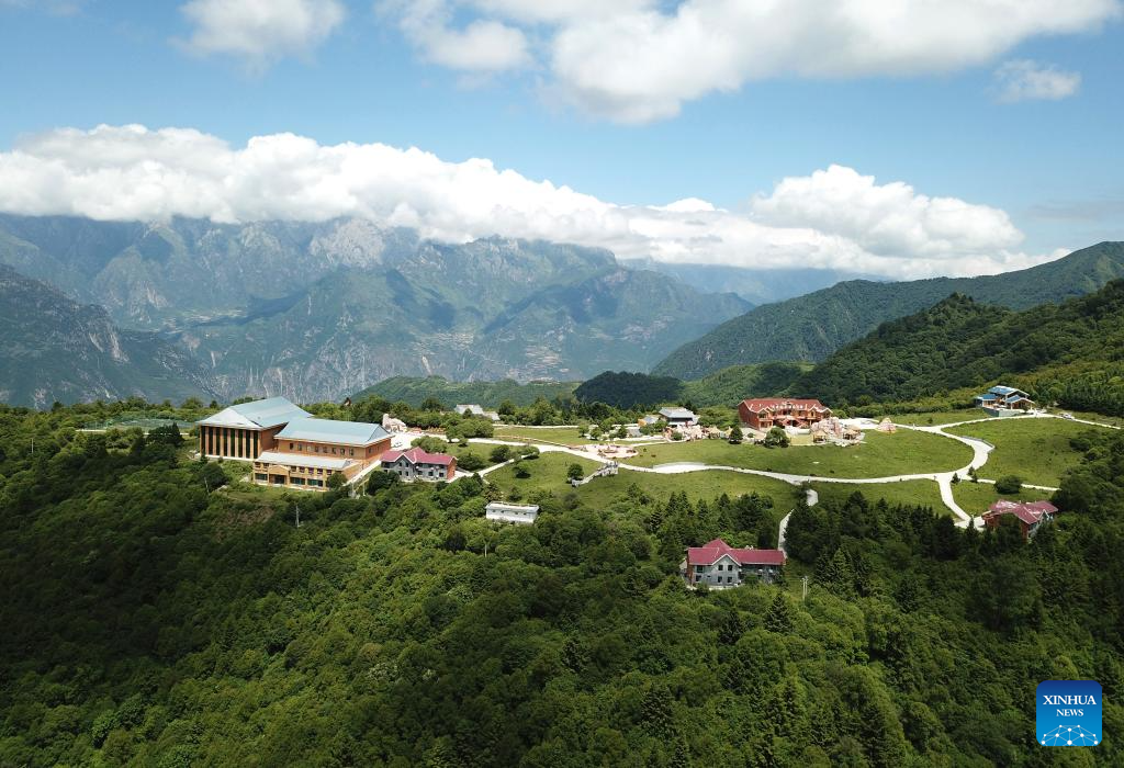 ZHOUQU, 13 julio, 2025 (Xinhua) -- Vista aérea tomada con un dron el 12 de julio de 2025 de la Montaña Lagashan, en el distrito de Zhouqu, en la prefectura autónoma tibetana de Gannan, en la provincia de Gansu, en el noroeste de China. (Xinhua/Ma Ning)