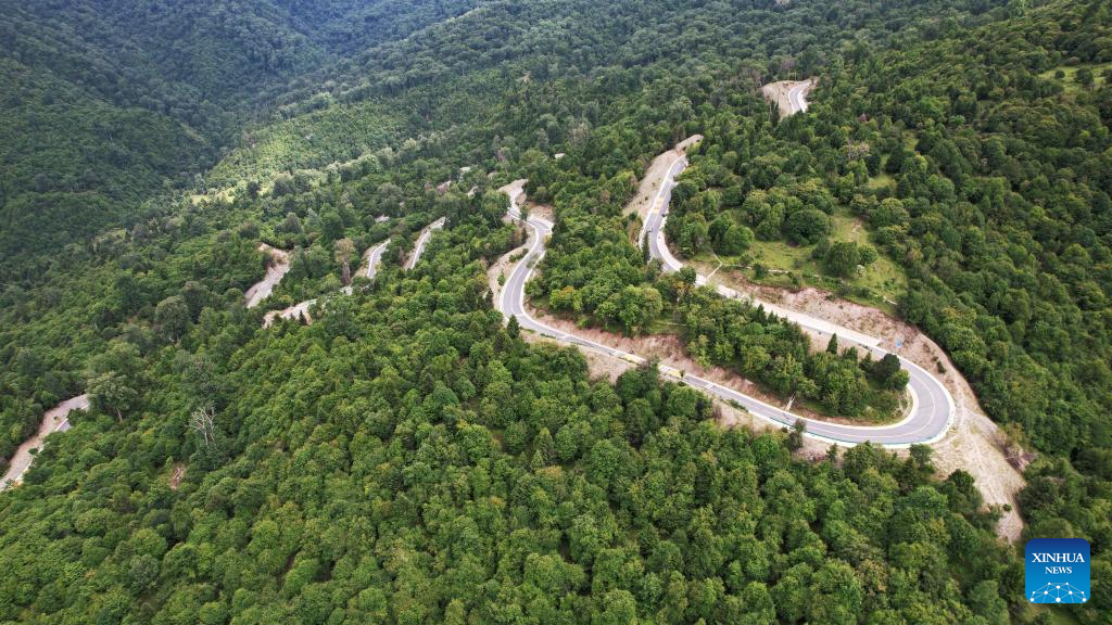 ZHOUQU, 13 julio, 2025 (Xinhua) -- Vista aérea tomada con un dron el 12 de julio de 2025 de una autopista en el distrito de Zhouqu, en la prefectura autónoma tibetana de Gannan, en la provincia de Gansu, en el noroeste de China. (Xinhua/Chen Bin)