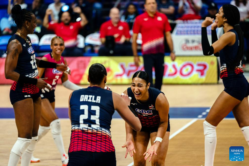 ARLINGTON, 14 julio, 2025 (Xinhua) -- Imagen del 13 de julio de 2025 de jugadoras de República Dominicana festejando un punto durante el partido del grupo 8 entre Alemania y República Dominicana en la Liga de Naciones de Voleibol Femenino 2025, en Arlington, Estados Unidos. (Xinhua/Chen Chen)