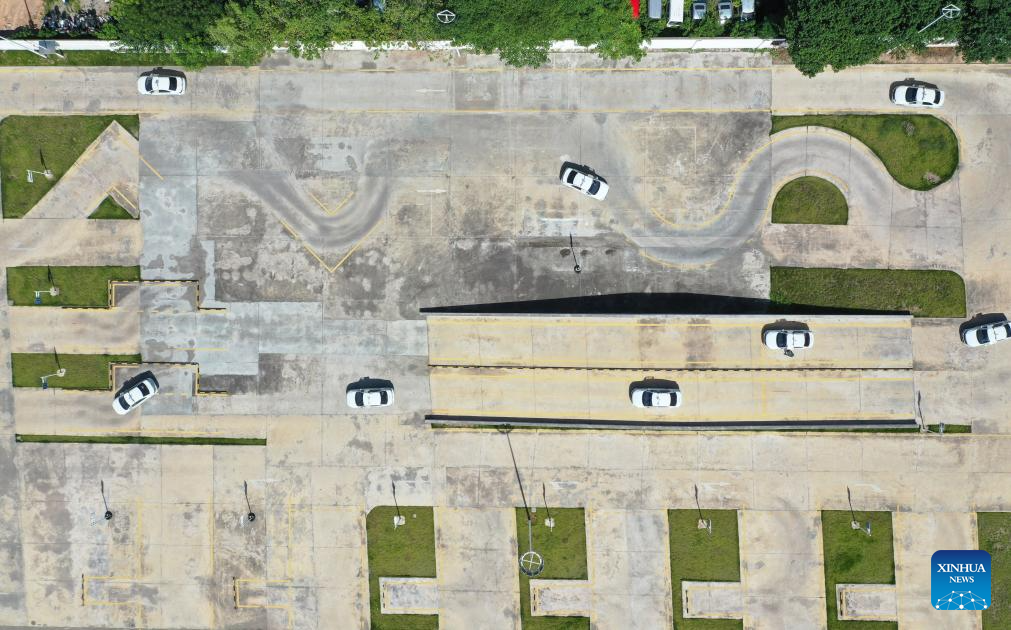 DONGYANG, 15 julio, 2025 (Xinhua) -- Vista aérea tomada con un dron el 2 de julio de 2025 de aprendices conduciendo vehículos de entrenamiento impulsados por Inteligencia Artificial (IA) en la escuela de conducción Xinlong, en Dongyang, en la provincia de Zhejiang, en el este de China. La escuela de conducción ha introducido un sistema de enseñanza asistido por IA, que incluye vehículos de formación con IA, simuladores de conducción en interiores y un sistema de gestión de datos impulsado por IA. (Xinhua/Bao Kangxuan)