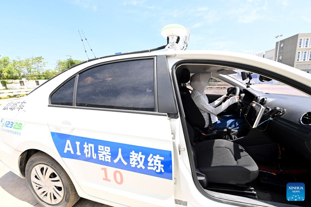 DONGYANG, 15 julio, 2025 (Xinhua) -- Imagen del 5 de julio de 2025 de un vehículo de entrenamiento impulsado por Inteligencia Artificial (IA) en la escuela de conducción Xinlong, en Dongyang, en la provincia de Zhejiang, en el este de China. La escuela de conducción ha introducido un sistema de enseñanza asistido por IA, que incluye vehículos de formación con IA, simuladores de conducción en interiores y un sistema de gestión de datos impulsado por IA. (Xinhua/Bao Kangxuan)