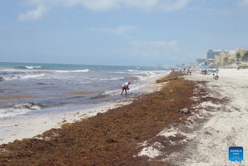 CANCUN, 15 julio, 2025 (Xinhua) -- Imagen del 14 de julio de 2025 de una playa con sargazo, en Cancún, estado de Quintana Roo, México. (Xinhua/Rodolfo Flores)