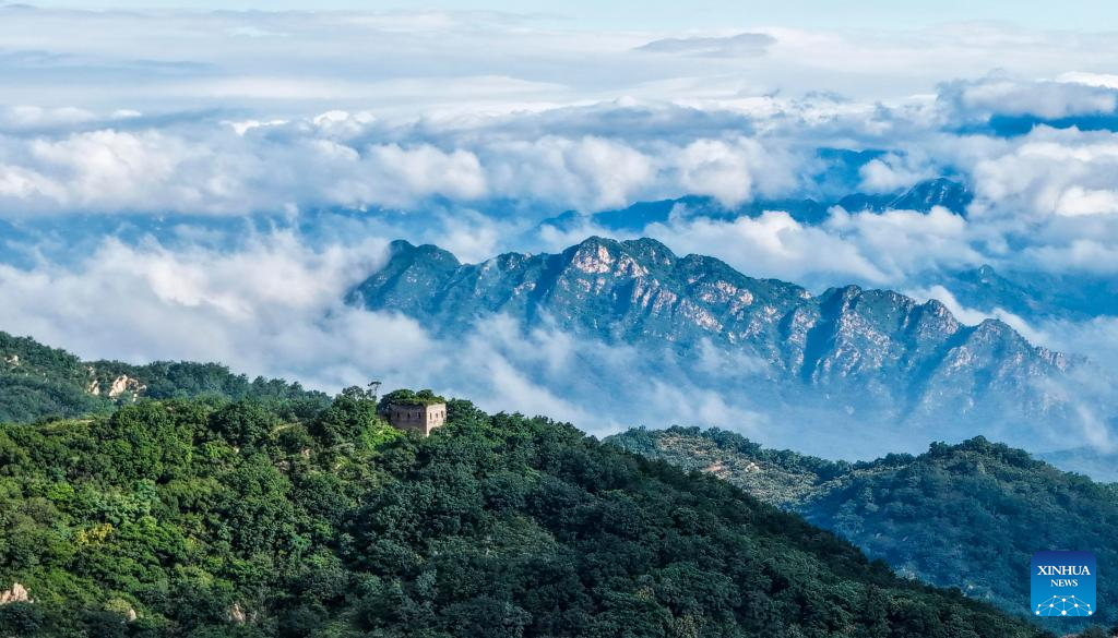 SHIJIAZHUANG, 16 julio, 2025 (Xinhua) -- Vista aérea tomada con un dron el 16 de julio de 2025 de la Gran Muralla, en la ciudad de Zunhua, en la provincia de Hebei, en el norte de China. (Xinhua/Liu Mancang)