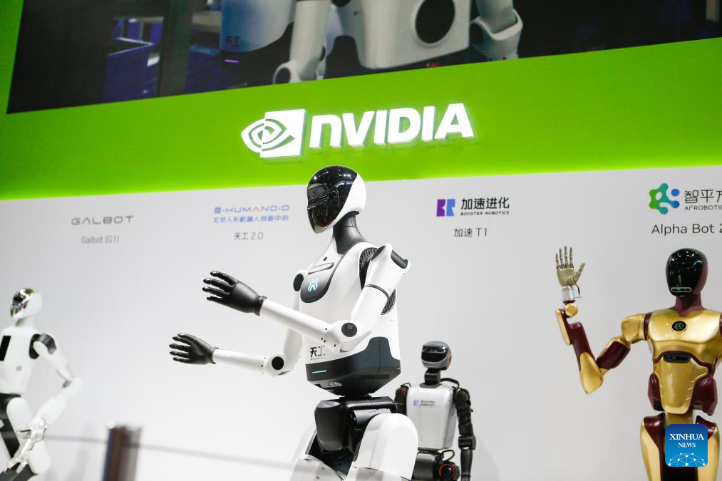 BEIJING, 18 julio, 2025 (Xinhua) -- Imagen del 17 de julio de 2025 de robots en el estand de Nvidia durante la III Exposición Internacional de la Cadena de Suministro de China (CISCE, por sus siglas en inglés), en Beijing, capital de China. Con el tema "Conectar el mundo para un futuro compartido", la CISCE 2025 se celebra del 16 al 20 de julio, reuniendo a más de 650 empresas e instituciones de 75 países, regiones y organizaciones internacionales. Los expositores extranjeros representaron el 32 por ciento del total, es decir 3 puntos porcentuales más que en la edición anterior. En el evento de este año también han participado más de 170 delegaciones de visitantes extranjeros, y más de 230 expositores han acudido por primera vez. (Xinhua/Ding Hongfa)