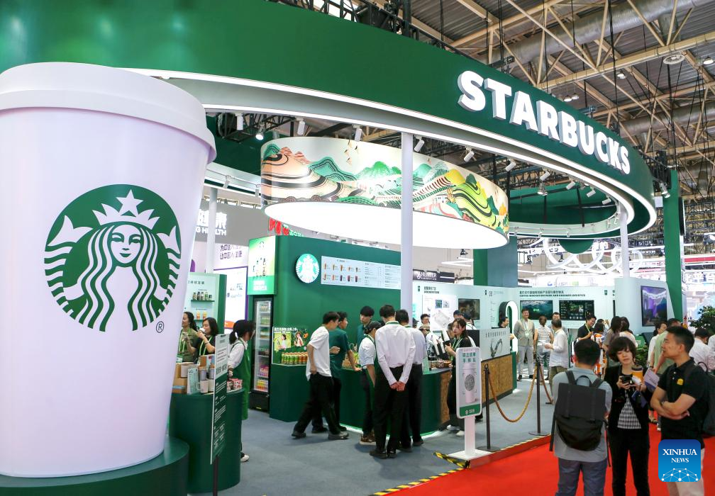 BEIJING, 18 julio, 2025 (Xinhua) -- Imagen del 17 de julio de 2025 del estand de Starbucks durante la III Exposición Internacional de la Cadena de Suministro de China (CISCE, por sus siglas en inglés), en Beijing, capital de China. Con el tema "Conectar el mundo para un futuro compartido", la CISCE 2025 se celebra del 16 al 20 de julio, reuniendo a más de 650 empresas e instituciones de 75 países, regiones y organizaciones internacionales. Los expositores extranjeros representaron el 32 por ciento del total, es decir 3 puntos porcentuales más que en la edición anterior. En el evento de este año también han participado más de 170 delegaciones de visitantes extranjeros, y más de 230 expositores han acudido por primera vez. (Xinhua/Ding Hongfa)