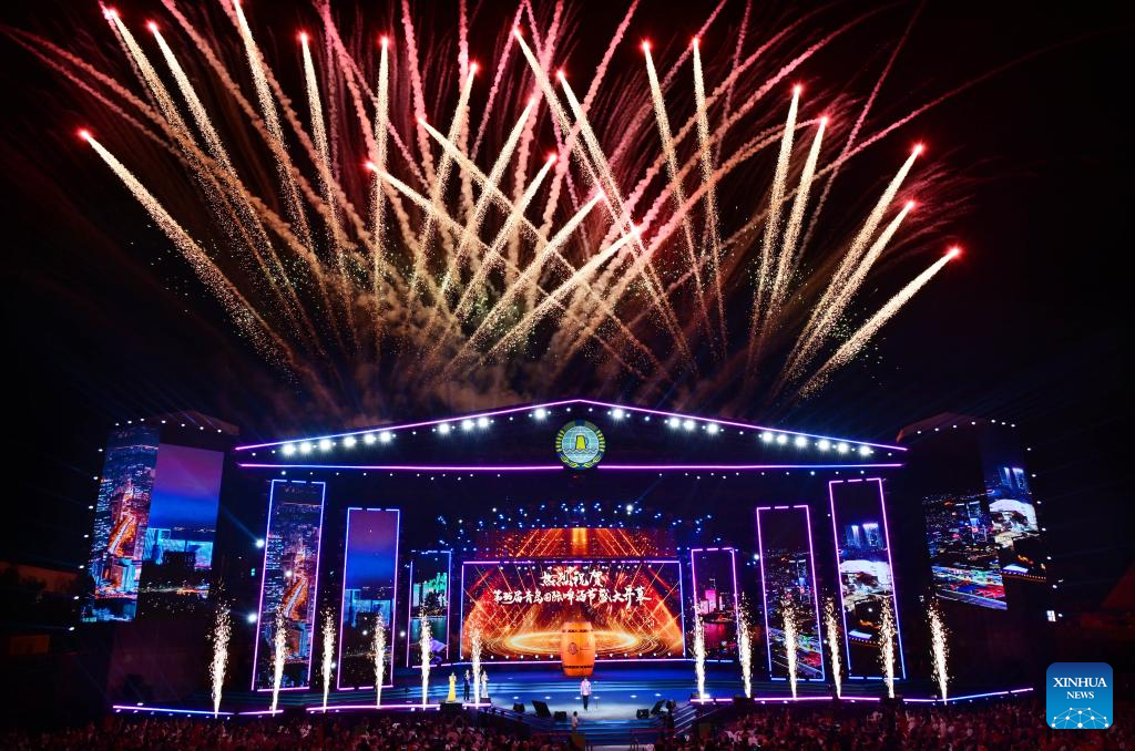 QINGDAO, 18 julio, 2025 (Xinhua) -- Imagen del 18 de julio de 2025 de un espectáculo de fuegos artificiales durante la ceremonia de apertura del 35° Festival Internacional de la Cerveza de Qingdao, en Qingdao, en la provincia de Shandong, en el este de China. El festival de 30 días de duración comenzó aquí el viernes, reuniendo a más de 2.300 marcas de cerveza nacionales y extranjeras. El festival también incluye una serie de actividades, como desfiles artísticos, concurso de cerveza artesanal, conciertos, concurso del Rey de la Cerveza, carnaval de animación y festival deportivo de moda. (Xinhua/Li Ziheng)