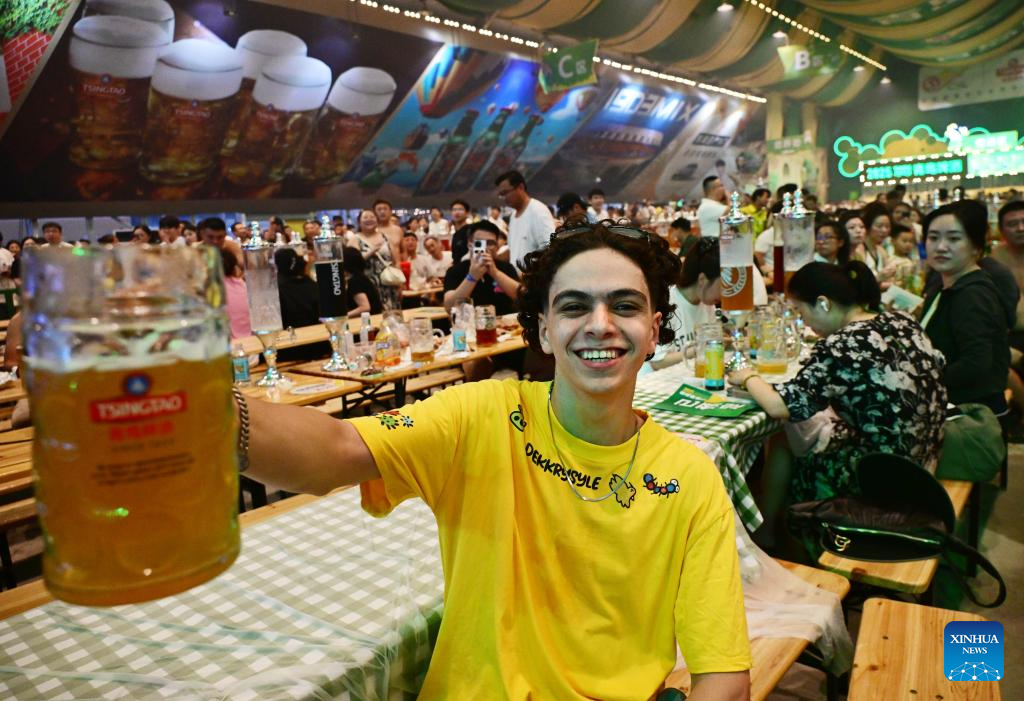 QINGDAO, 18 julio, 2025 (Xinhua) -- Un visitante disfruta de cerveza durante el 35° Festival Internacional de la Cerveza de Qingdao, en la Nueva Area de Xihai'an (Costa Oeste), en Qingdao, en la provincia de Shandong, en el este de China, el 18 de julio de 2025. El festival de 30 días de duración comenzó aquí el viernes, reuniendo a más de 2.300 marcas de cerveza nacionales y extranjeras. El festival también incluye una serie de actividades, como desfiles artísticos, concurso de cerveza artesanal, conciertos, concurso del Rey de la Cerveza, carnaval de animación y festival deportivo de moda. (Xinhua/Li Ziheng)