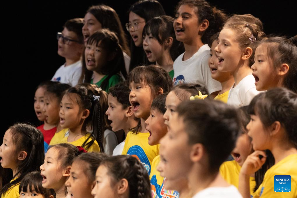 BOLONIA, 20 julio, 2025 (Xinhua) -- Imagen del 18 de julio de 2025 de niños del Pequeño Coro del Antoniano y el Coro Infantil de Hydrangea realizando una presentación juntos, en Bolonia, Italia. El Instituto Antoniano en Bolonia organizó una presentación especial conjunta el viernes, presentando a niños del Pequeño Coro del Antoniano de Italia y el Coro Infantil de Hydrangea de China. La presentación fue un punto importante del Campamento de Verano del Antoniano 2025, un intercambio cultural y musical de diez días, coorganizado por ambos coros. Guiados por los maestros del Antoniano, 22 niños de China y sus compañeros italianos conectaron a través de ensayos, juegos musicales y actividades prácticas. (Xinhua/Li Jing)
