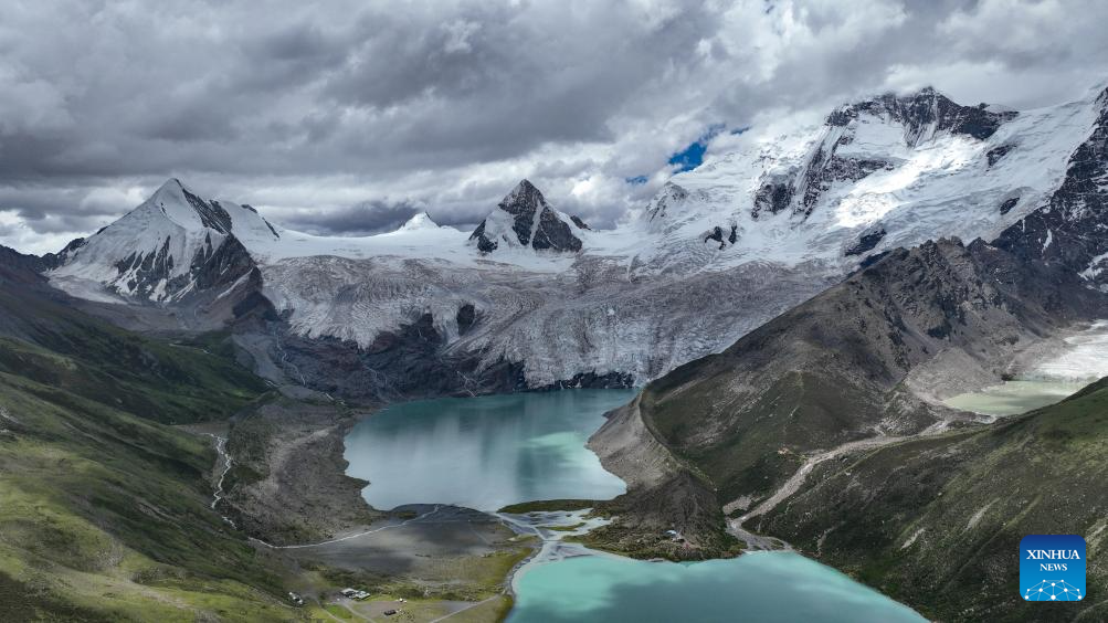 NAGQU, 20 julio, 2025 (Xinhua) -- Vista aérea tomada con un dron el 19 de julio de 2025 de la Montaña Sapukonglagabo, en el distrito de Biru, en la ciudad de Nagqu, en la región autónoma de Xizang, en el suroeste de China. La Montaña Sapukonglagabo, cuya cima principal se eleva a casi 7.000 metros sobre el nivel del mar, es la preferida de los turistas por sus magníficos paisajes nevados, espectaculares glaciares y abundante vida salvaje. (Xinhua/Jigme Dorje)