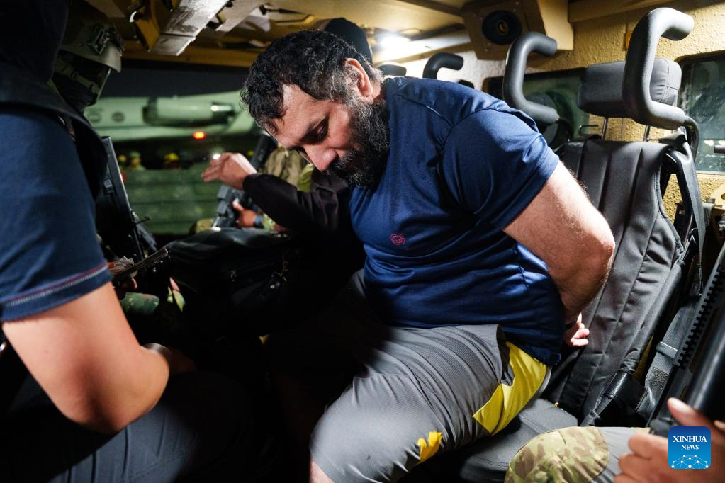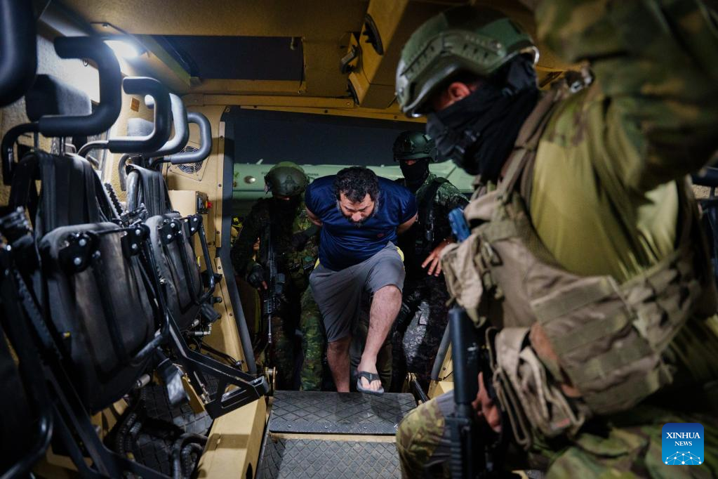 QUITO, 20 julio, 2025 (Xinhua) -- Imagen de archivo del 25 de junio de 2025 de Adolfo Macías (c), alias "Fito", durante su traslado bajo resguardo militar al Centro de Rehabilitación Social La Roca, en Guayaquil, Ecuador. Las autoridades ecuatorianas extraditaron el domingo a Estados Unidos a Adolfo Macías Villamar, alias "Fito", considerado uno de los mayores narcotraficantes de Ecuador y líder de la banda criminal "Los Choneros", después de que fue recapturado el 25 de junio pasado en una operación militar en la provincia de Manabí. (Xinhua/Str)