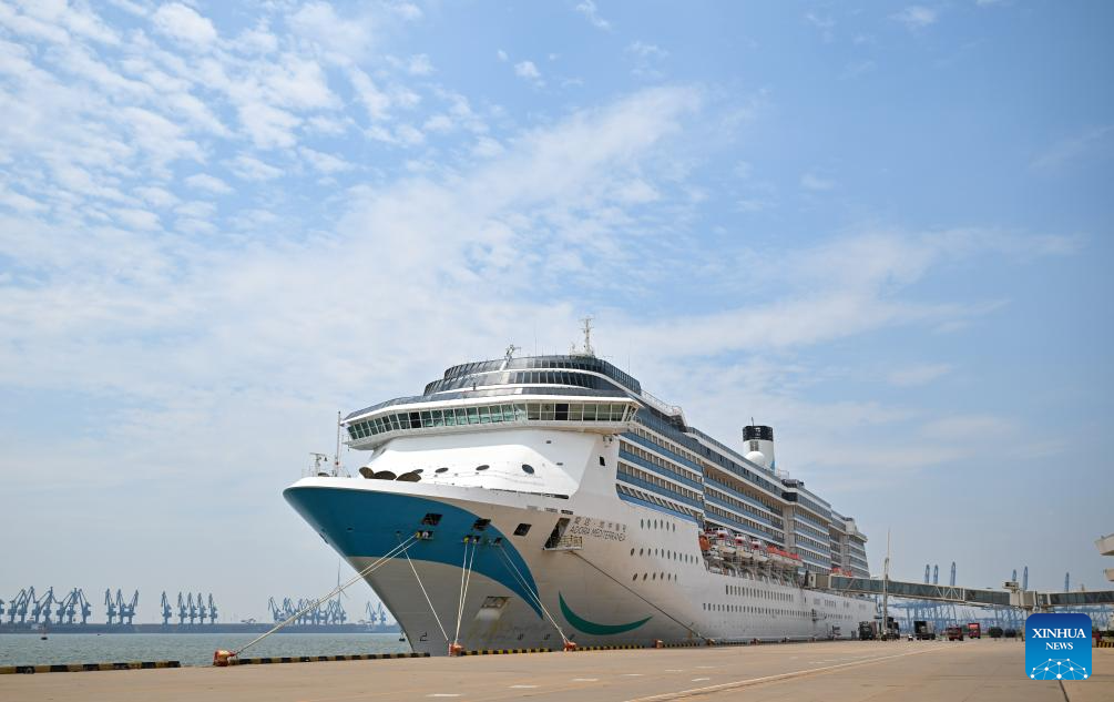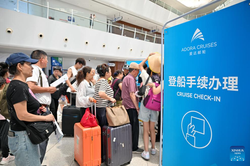 TIANJIN, 23 julio, 2025 (Xinhua) -- Según datos oficiales, el puerto de cruceros de Tianjin ha facilitado la entrada y salida de casi 40.000 pasajeros desde julio de este año, junto con 16 visitas de cruceros, lo que marca un aumento interanual del 17 por ciento. (Xinhua/Sun Fanyue)