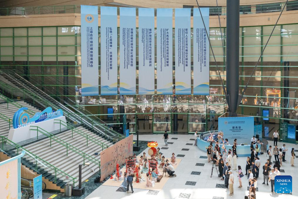 ZHENGZHOU, 24 julio, 2025 (Xinhua) -- Trabajadores de los medios de comunicación toman fotografías de un espectáculo de música folclórica que reproduce la escena de una antigua pintura china en la sede de la Cumbre de Medios de Comunicación y Think Tanks de la Organización de Cooperación de Shanghai (OCS), en Zhengzhou, en la provincia de Henan, en el centro de China, el 24 de julio de 2025. Con el lema "Defender el 'Espíritu de Shanghai' para construir un hogar más hermoso", la Cumbre de Medios de Comunicación y Think Tanks de la OCS se realiza aquí del 23 al 27 de julio. (Xinhua/Wu Jingdan)