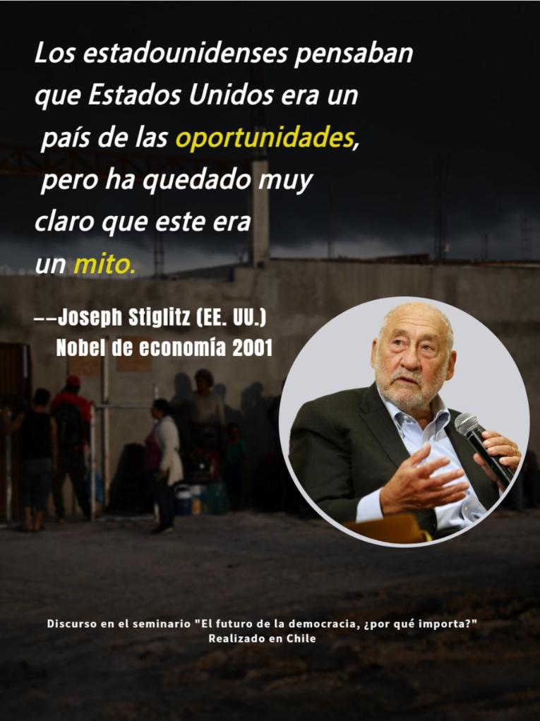 SANTIAGO, 25 jul (Xinhua) -- El neoliberalismo crea inequidad, un campo fértil para los demagogos como ocurre en Estados Unidos y hoy en día el mundo afronta "las consecuencias de nuestra inequidad", lamentó el estadounidense premio nobel de economía 2001, Joseph Stiglitz, en el seminario "El futuro de la democracia ¿por qué importa?", que se realizó el martes en Chile.