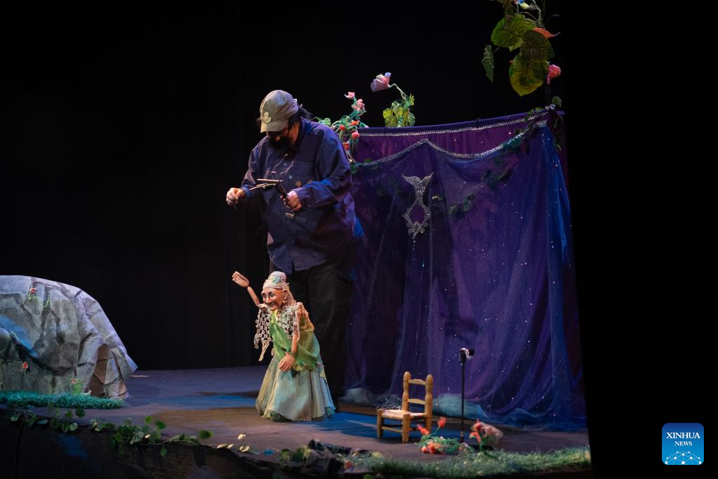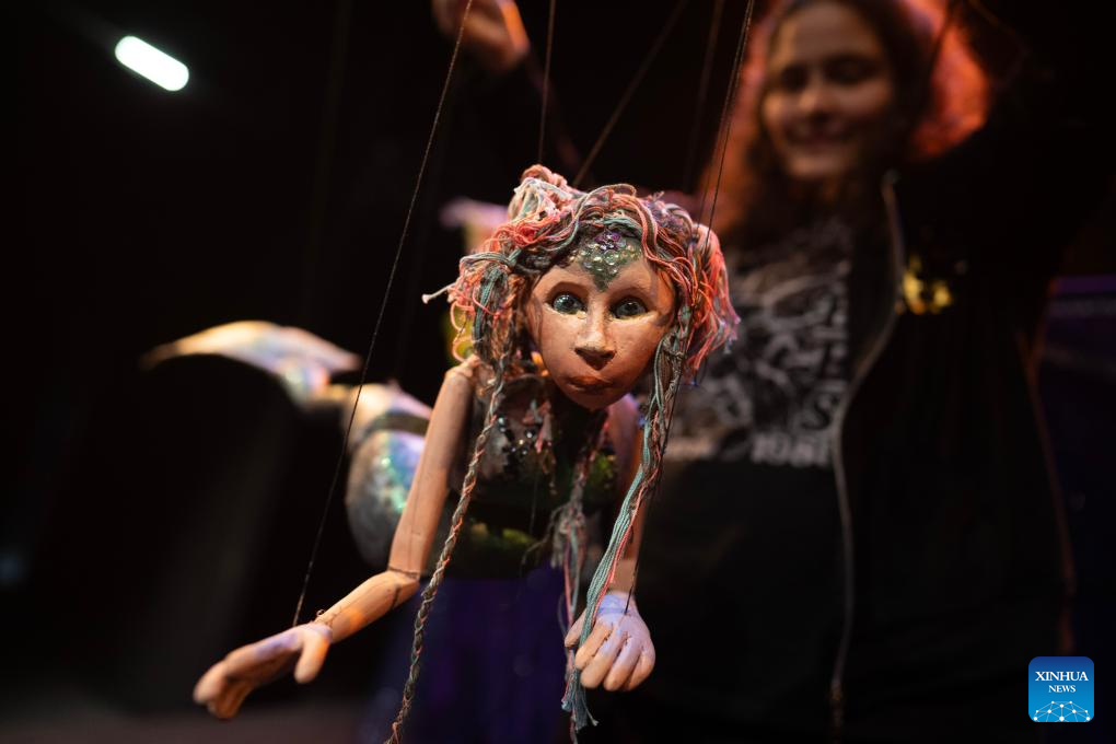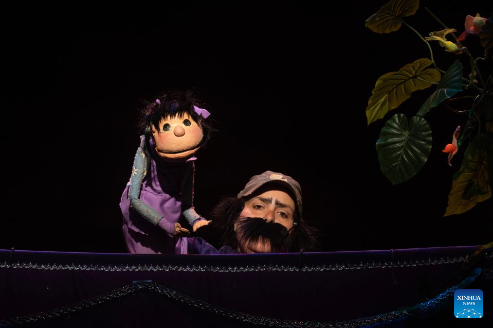 BUENOS AIRES, 25 julio, 2025 (Xinhua) -- Imagen del 24 de julio de 2025 de la titiritera de la compañía "Hugo e Inés", Inés Pasic, realizando una presentación de la obra "Cuentos Pequeños" en el marco del 11° Festival Internacional de Títeres Al Sur, en el Teatro El Popular, en la ciudad de Buenos Aires, capital de Argentina. Un Festival Internacional de Títeres, con la presencia de apasionados nacionales y extranjeros por el oficio y el arte que da vida a marionetas y títeres, llena de color y diversión las vacaciones de invierno en Argentina, un receso de dos semanas durante el cual los estudiantes de todos los niveles quedan eximidos de concurrir a clases. (Xinhua/Martín Zabala)