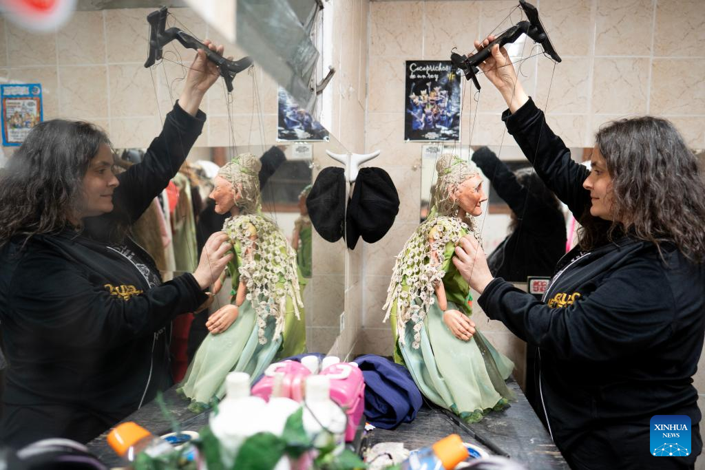 Imagen del 24 de julio de 2025 de la titiritera de la compañía "El alma en un hilo", Rosana López, revisando una marioneta previo a realizar una presentación de la obra "¿Dónde está Borondongo?" en el marco del 11° Festival Internacional de Títeres Al Sur, en el teatro El Galpón de Catalinas, en la ciudad de Buenos Aires, capital de Argentina. Un Festival Internacional de Títeres, con la presencia de apasionados nacionales y extranjeros por el oficio y el arte que da vida a marionetas y títeres, llena de color y diversión las vacaciones de invierno en Argentina, un receso de dos semanas durante el cual los estudiantes de todos los niveles quedan eximidos de concurrir a clases. (Xinhua/Martín Zabala)
