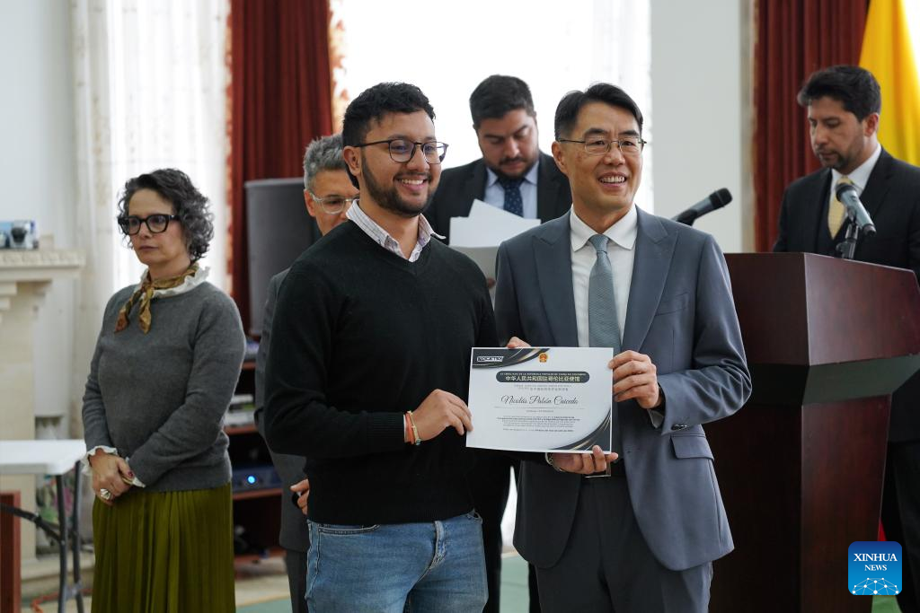 BOGOTÁ, 24 jul (Xinhua) -- En un acto realizado el jueves en Bogotá, la Embajada de la República Popular China en Colombia entregó 27 becas a estudiantes colombianos para continuar su formación profesional en diferentes universidades chinas y promover el intercambio académico y de cooperación entre ambas naciones.