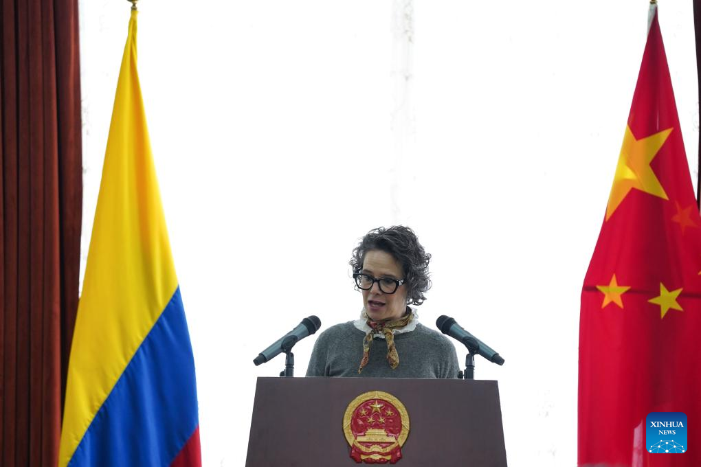 BOGOTA, 25 julio, 2025 (Xinhua) -- Imagen del 24 de julio de 2025 de la directora de asuntos culturales de la Cancillería colombiana, Catalina Ceballos Carriazo, hablando durante un acto de entrega de becas por parte del Gobierno chino a estudiantes colombianos, en la ciudad de Bogotá, capital de Colombia. En un acto realizado el jueves en Bogotá, la Embajada de la República Popular China en Colombia entregó 27 becas a estudiantes colombianos para continuar su formación profesional en diferentes universidades chinas y promover el intercambio académico y de cooperación entre ambas naciones. (Xinhua/Andrés Moreno)
