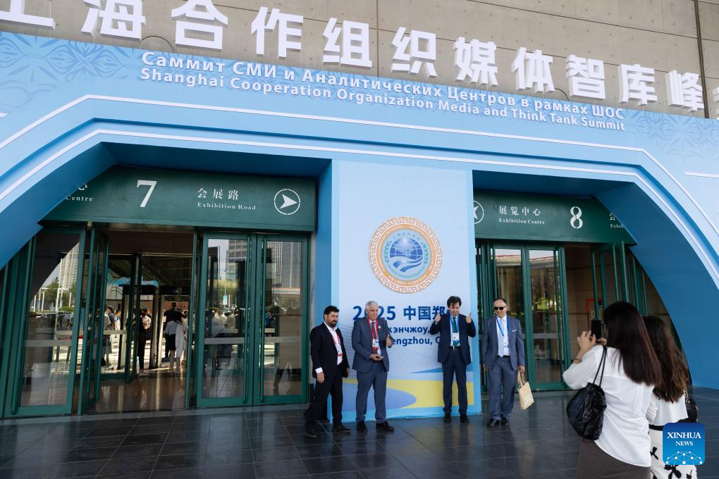 ZHENGZHOU, 25 julio, 2025 (Xinhua) -- Representantes llegan a la sede de la Cumbre de Medios de Comunicación y Think Tanks de la Organización de Cooperación de Shanghai (OCS), en Zhengzhou, capital de la provincia de Henan, en el centro de China, el 25 de julio de 2025. La cumbre se realiza aquí del 23 al 27 de julio. (Xinhua/Bai Xueqi)