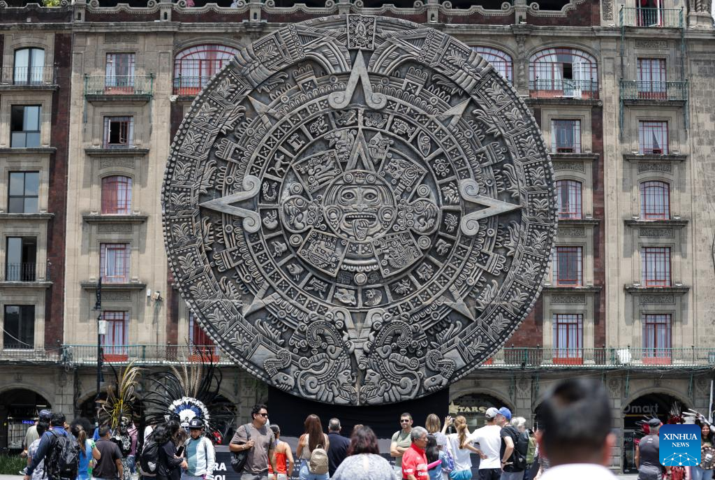 CIUDAD DE MEXICO, 25 julio, 2025 (Xinhua) -- Personas asisten a una celebración en el marco de la conmemoración de los 700 años de la fundación de México-Tenochtitlan, en el Zócalo de la Ciudad de México, capital de México, el 25 de julio de 2025. (Xinhua/Francisco Cañedo)