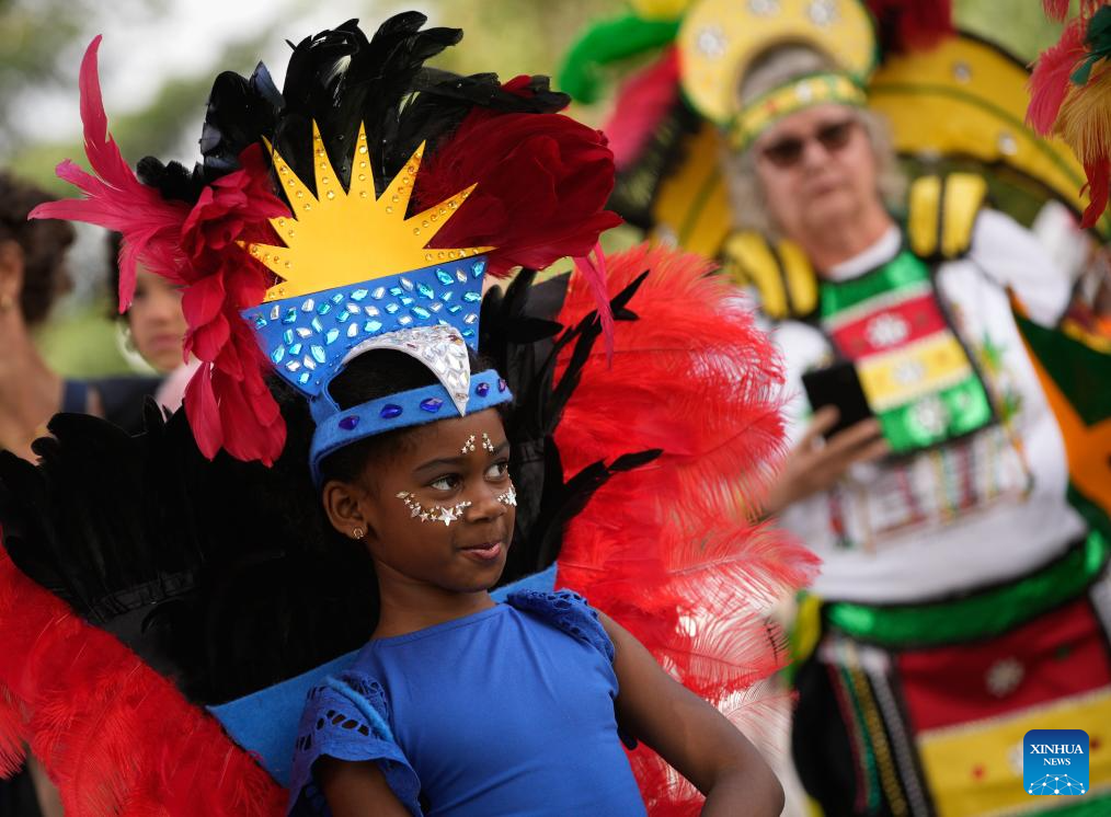 COQUITLAM, 27 julio, 2025 (Xinhua) -- Imagen del 26 de julio de 2025 de una niña portando un disfraz mientras posa para fotografías durante el Desfile de Carnaval en el Festival Días del Caribe 2025, en Coquitlam, Columbia Británica, Canadá. El evento de dos días contó con música en vivo, presentaciones culturales, un desfile, cocina tradicional caribeña, y un mercado de artesanías, resaltando la vitalidad de la cultura caribeña. (Xinhua/Liang Sen)