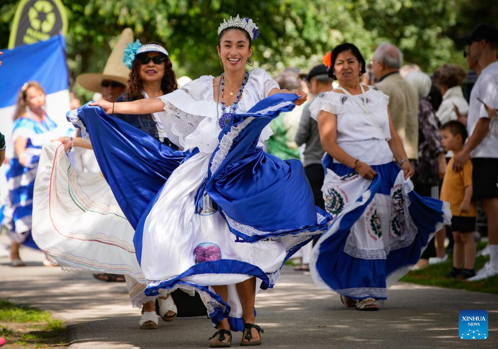 COQUITLAM, 27 julio, 2025 (Xinhua) -- Imagen del 26 de julio de 2025 de bailarinas realizando una presentación durante el Desfile de Carnaval en el Festival Días del Caribe 2025, en Coquitlam, Columbia Británica, Canadá. El evento de dos días contó con música en vivo, presentaciones culturales, un desfile, cocina tradicional caribeña, y un mercado de artesanías, resaltando la vitalidad de la cultura caribeña. (Xinhua/Liang Sen)