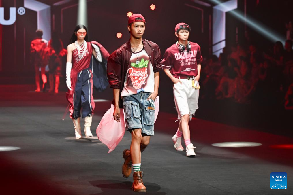 SHANGHAI, 27 julio, 2025 (Xinhua) -- Imagen del 26 de julio de 2025 de modelos campeones presentando creaciones de moda durante el 19 Concurso Final de Súper Modelos de China, en Shanghai, en el este de China. El concurso final se celebró aquí el sábado, con la participación de 60 modelos seleccionados de entre casi 10.000 concursantes. (Xinhua/Chen Haoming)