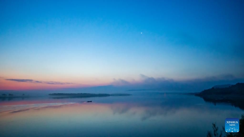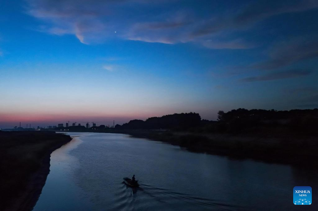 HEILONGJIANG, 28 julio, 2025 (Xinhua) -- Imagen del 26 de julio de 2025 de Venus en su mayor altitud anual a lo largo del río Heilongjiang, en el distrito de Jiayin, de la ciudad de Yichun, provincia de Heilongjiang, en el noreste de China. (Xinhua/Li Shaojun)
