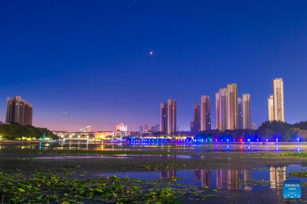 HEILONGJIANG, 28 julio, 2025 (Xinhua) -- Venus es visto en su mayor altitud anual en un parque de ciencia y tecnología del Grupo Beidahuang, en la provincia de Heilongjiang, en el noreste de China, el 28 de julio de 2025. (Xinhua/Qian Boyu)