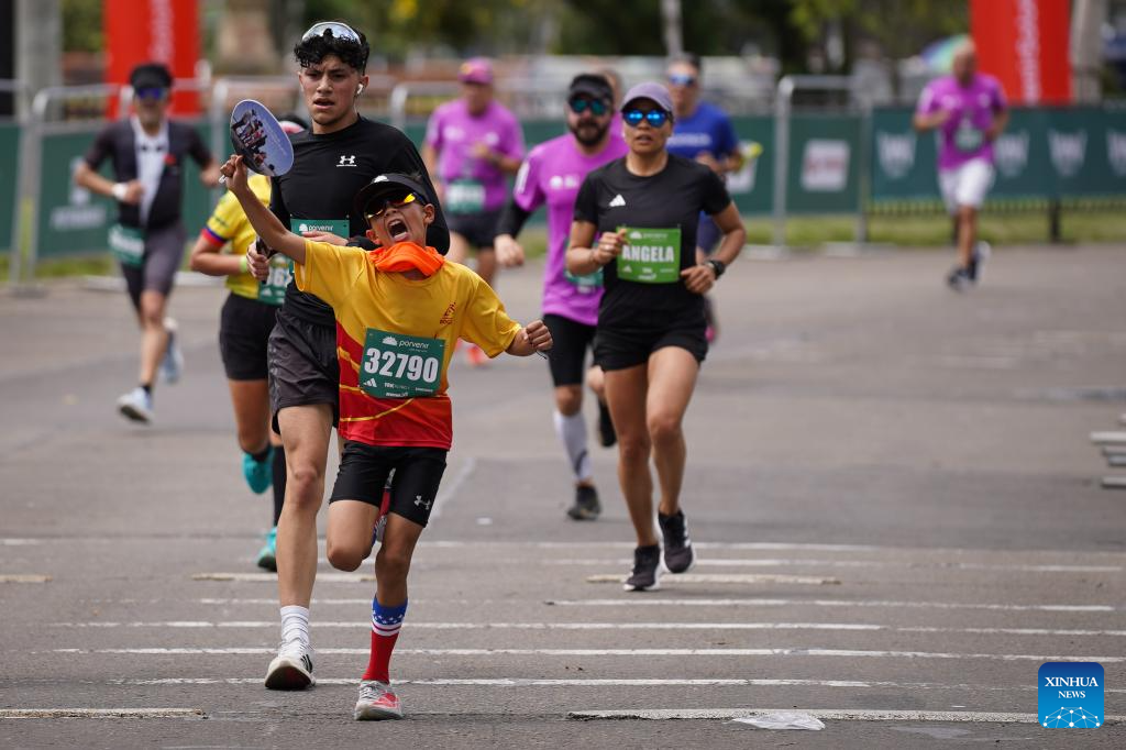 BOGOTA, 28 julio, 2025 (Xinhua) -- Imagen del 27 de julio de 2025 de personas participando en el Medio Maratón de Bogotá, en Bogotá, capital de Colombia. La edición anual del Medio Maratón de Bogotá cumplió el domingo 25 años como la principal carrera atlética llevada a cabo en calles y avenidas de la capital de Colombia, según difundieron los organizadores. (Xinhua/Andrés Moreno)