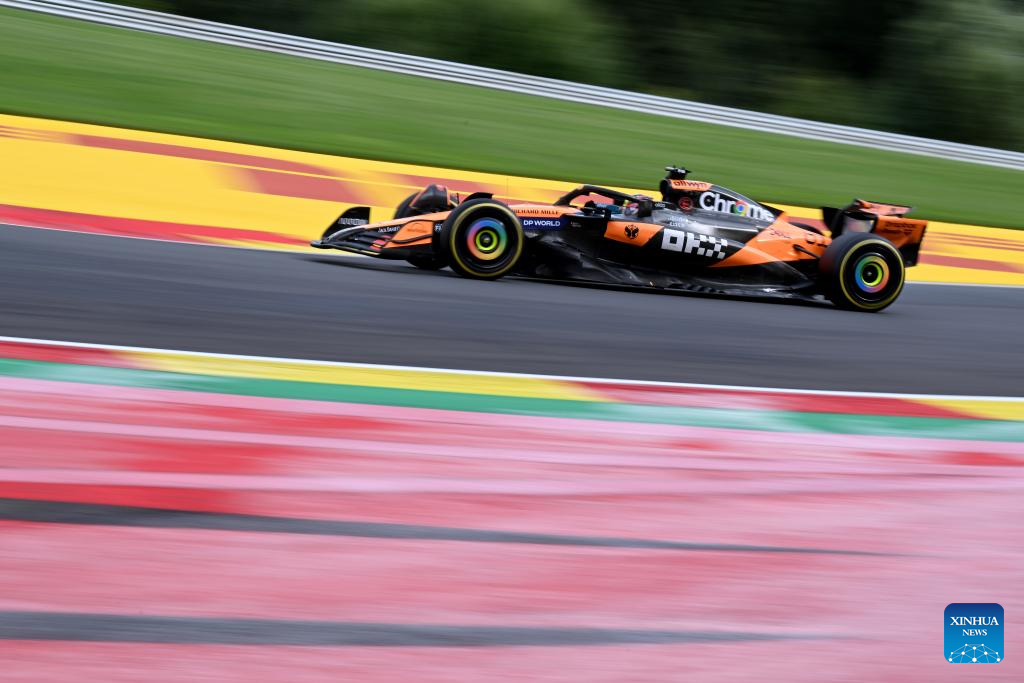 STAVELOT, 28 julio, 2025 (Xinhua) -- Imagen del 27 de julio de 2025 del piloto australiano de la escudería McLaren, Oscar Piastri, compitiendo durante la carrera del Gran Premio de Bélgica de Fórmula Uno, en el circuito de Spa-Francorchamps, en Stavelot, Bélgica. (Xinhua/Zhao Dingzhe)