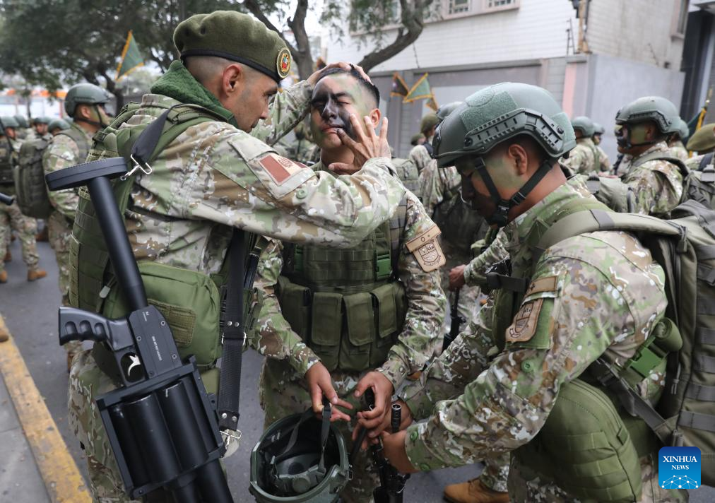 LIMA, 29 julio, 2025 (Xinhua) -- Elementos del Ejército peruano se preparan para participar en la Gran Parada y Desfile Cívico Militar 2025 con motivo de la celebración de los 204 años de la independencia nacional, en Lima, Perú, el 29 de julio de 2025. (Xinhua/Mariana Bazo)