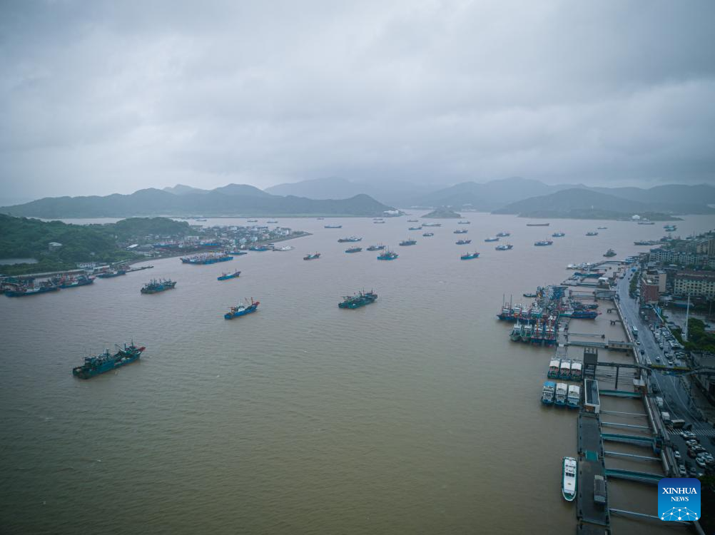 NINGBO, 29 julio, 2025 (Xinhua) -- Los servicios de ferry se encuentran suspendidos en un muelle, en el distrito de Xiangshan de Ningbo, en la provincia de Zhejiang, en el este de China, el 29 de julio de 2025. El tifón Co-May, el octavo tifón de este año, trajo fuertes lluvias al distrito de Xiangshan de Ningbo. Los barcos locales han regresado al puerto para refugiarse y se han suspendido los servicios de ferry. (Xinhua/Jiang Han)