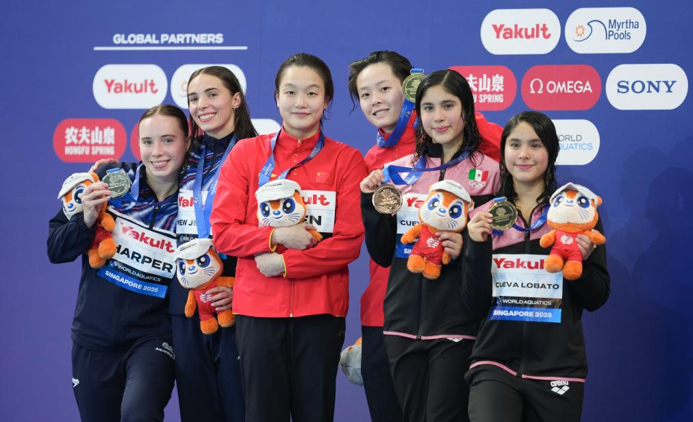 SIDNEY, 29 julio, 2025 (Xinhua) -- Li Mengwen, de China, devuelve el trofeo durante el sorteo final de la Copa Asiática Femenina de la AFC 2026 en el Ayuntamiento, en Sídney, Australia, el 29 de julio de 2025. (Xinhua/Ma Ping)