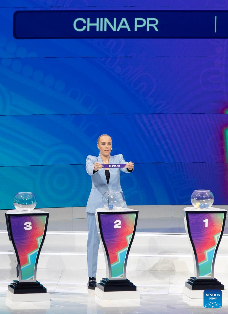 SIDNEY, 29 julio, 2025 (Xinhua) -- La asistente de sorteo Tameka Yallop, de Australia, sortea a China durante el sorteo final de la Copa Asiática Femenina de la AFC 2026 en el Ayuntamiento, en Sídney, Australia, el 29 de julio de 2025. (Xinhua/Ma Ping)