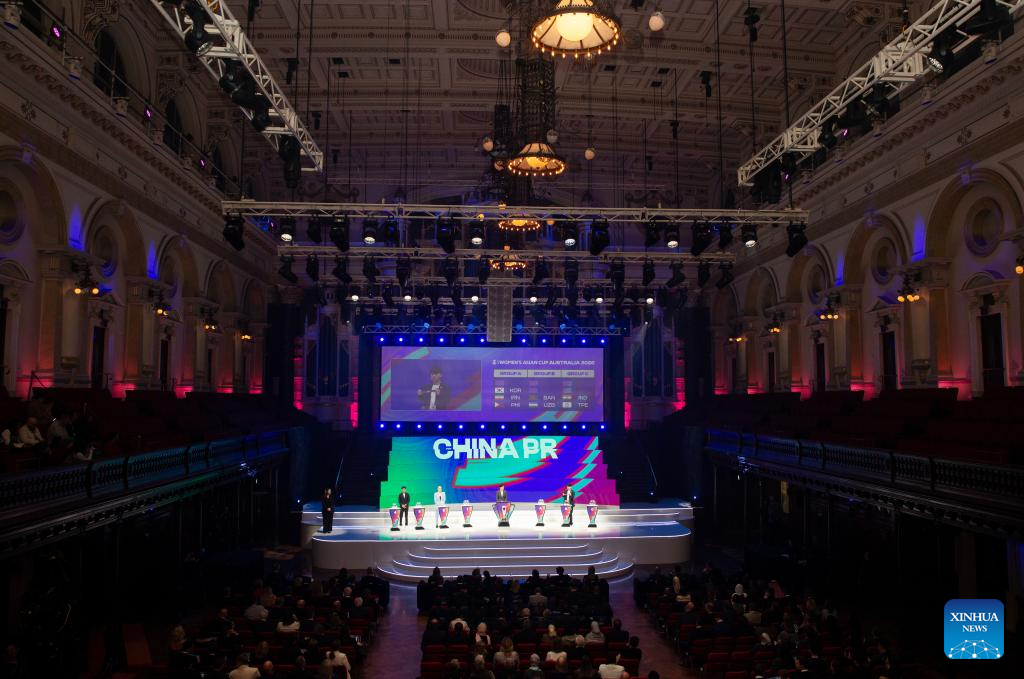 SIDNEY, 29 julio, 2025 (Xinhua) -- Imagen tomada el 29 de julio de 2025 del sorteo final de la Copa Asiática Femenina de la AFC 2026 en el Ayuntamiento, en Sídney, Australia. (Xinhua/Ma Ping)
