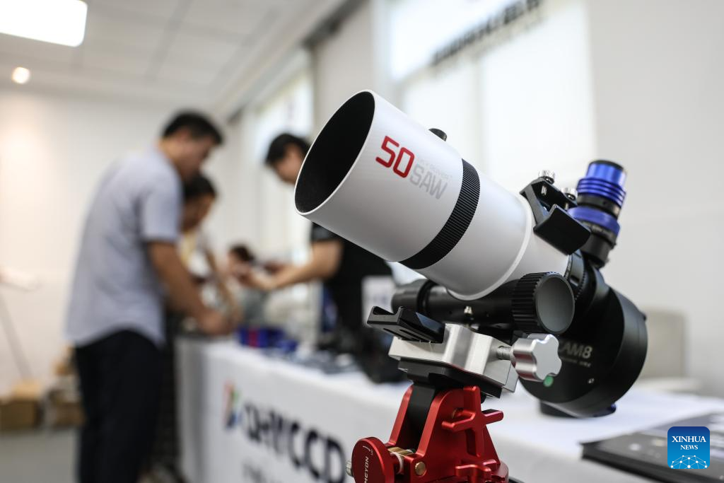 DALIAN, 31 julio, 2025 (Xinhua) -- Imagen del 31 de julio de 2025 de un equipo fotográfico astronómico durante la primera edición de la Cumbre de Ciencia Ciudadana en Astronomía, en Dalian, en la provincia de Liaoning, en el noreste de China. El evento se llevó a cabo aquí el jueves con el objetivo de promover la divulgación y la participación pública en la astronomía. (Xinhua/Pan Yulong)