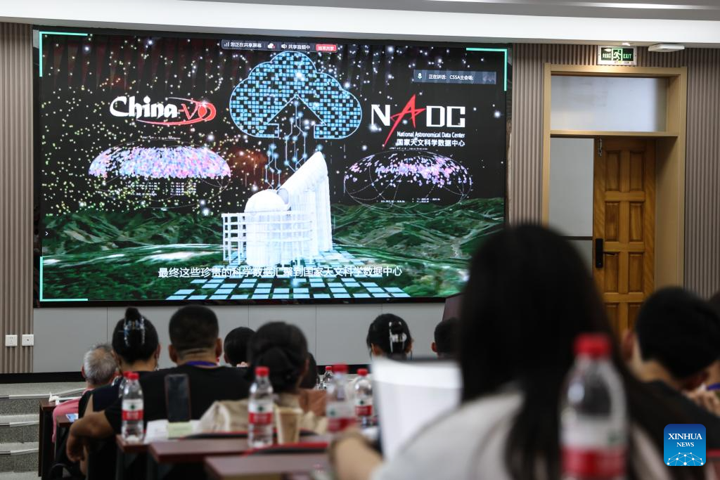 DALIAN, 31 julio, 2025 (Xinhua) -- Asistentes observan un video de divulgación científica astronómica durante la primera edición de la Cumbre de Ciencia Ciudadana en Astronomía, en Dalian, en la provincia de Liaoning, en el noreste de China, el 31 de julio de 2025. El evento se llevó a cabo aquí el jueves con el objetivo de promover la divulgación y la participación pública en la astronomía. (Xinhua/Pan Yulong)