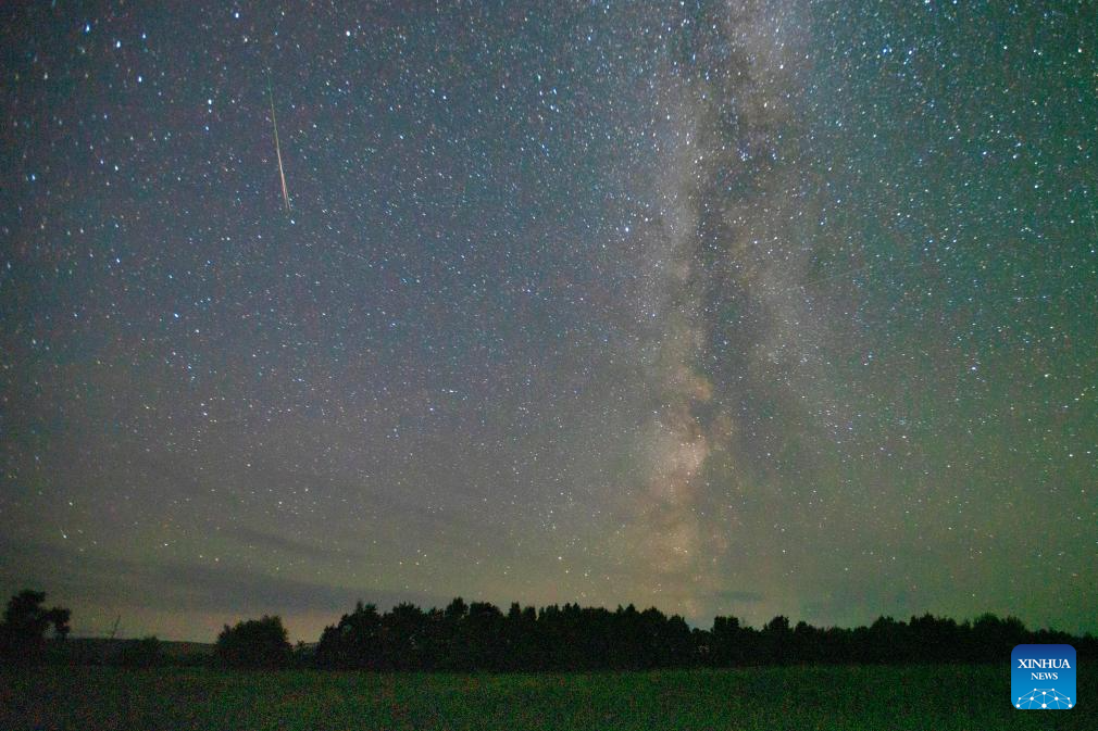 HARBIN, 1 agosto, 2025 (Xinhua) -- Imagen de larga exposición del 1 de agosto de 2025 de una lluvia de meteoritos sobre el distrito de Jiayin, en la ciudad de Yichun, en la provincia de Heilongjiang, en el noreste de China. Varias lluvias de meteoritos iluminaron recientemente el cielo nocturno en la provincia de Heilongjiang, en el noreste de China. (Xinhua/Li Shaojun)